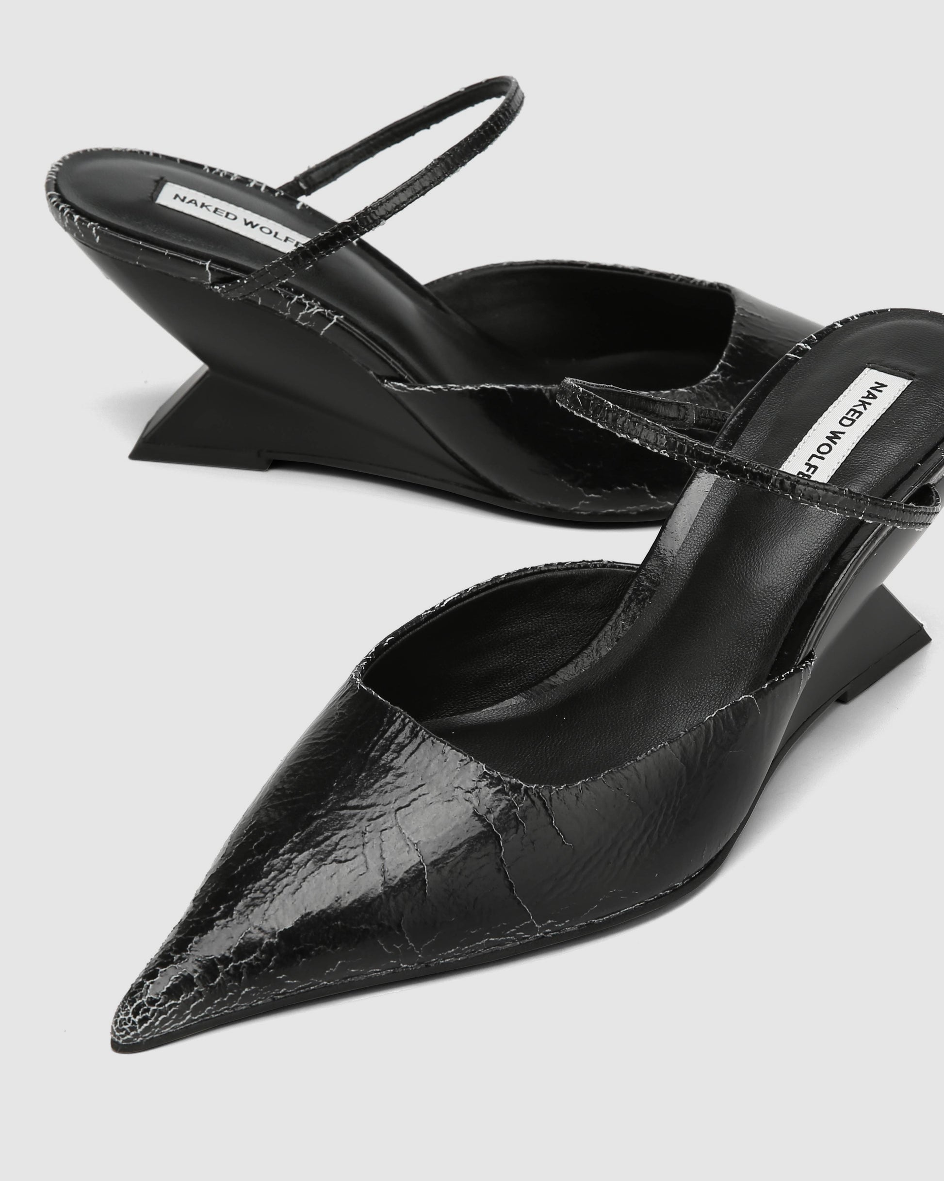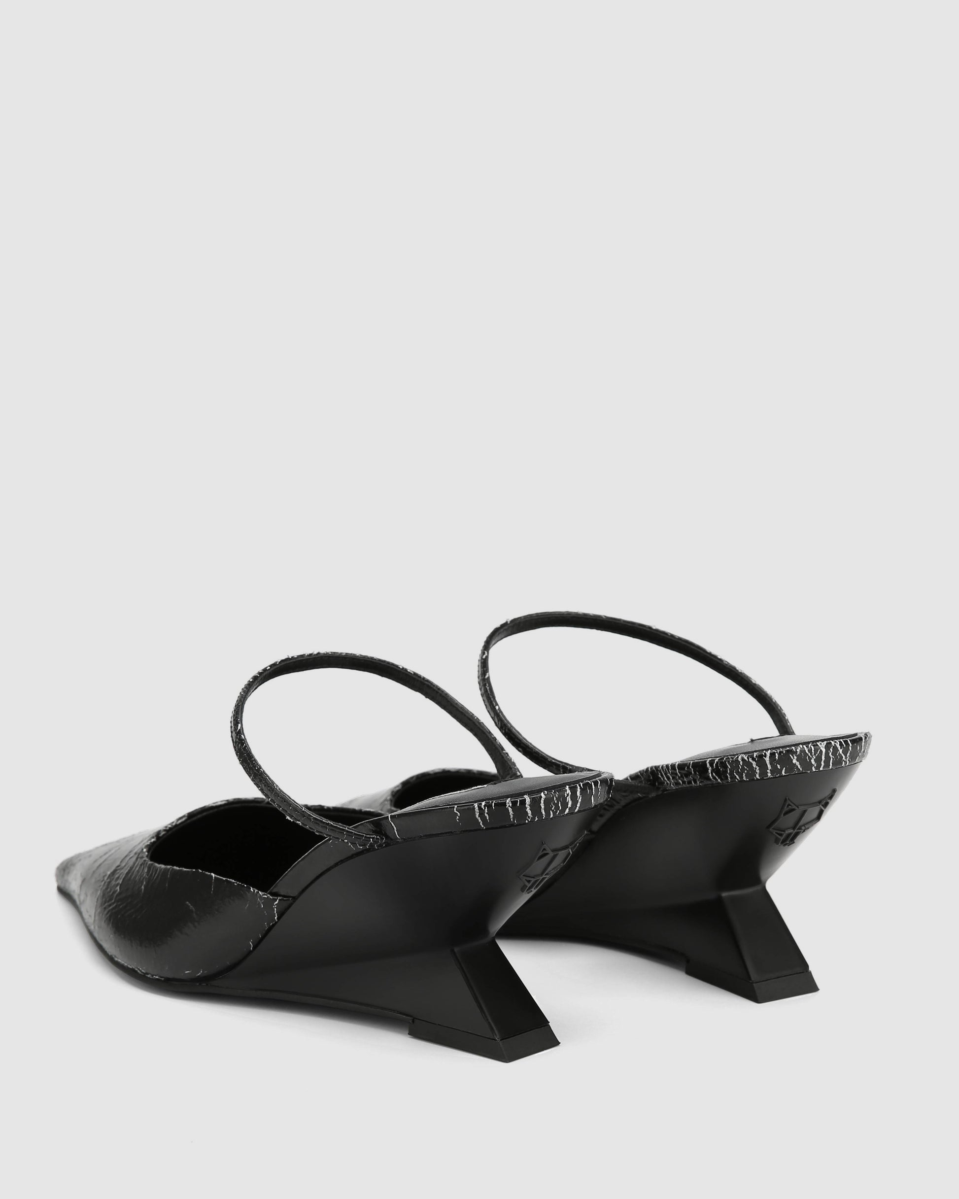 Introducing our new point wedged heel, Salem. This heel comes both a mix of leathers, luxurious brown leather and a new cracked leather. The sexy and sophisticated cut of this upper is flattering and perfect for day and night wear. The upper features a thin instep strap for perfect fitting. With a sleek point toe shape and an angular wedge mould featuring discreet branding, this heel balances style and modern design. The 70mm heel height and full leather insole ensure both comfort and durability.