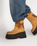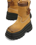 Introducing Sandstorm, our latest 90mm Chunky Boot with our famous Square Toe Shape, designed for those who appreciate bold fashion statements. This boot features a nubuck pull on design for comfort and style, complemented by a distinctive Wolfe head ball charm for added flair. Each pair has a hand crafted dirty finish. Perfect for trendsetters seeking both edge and elegance, this boot is a must-have for any fashion-forward wardrobe.