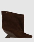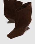 Shade is an above-ankle boot defined by sharp precision and modern texture. A square chiselled toe and suede upper surface set against a 70mm matte-sprayed heel create a silhouette that feels both architectural and understated. Finished with a stainless steel logo on the upper, it’s a study in elevated edge.