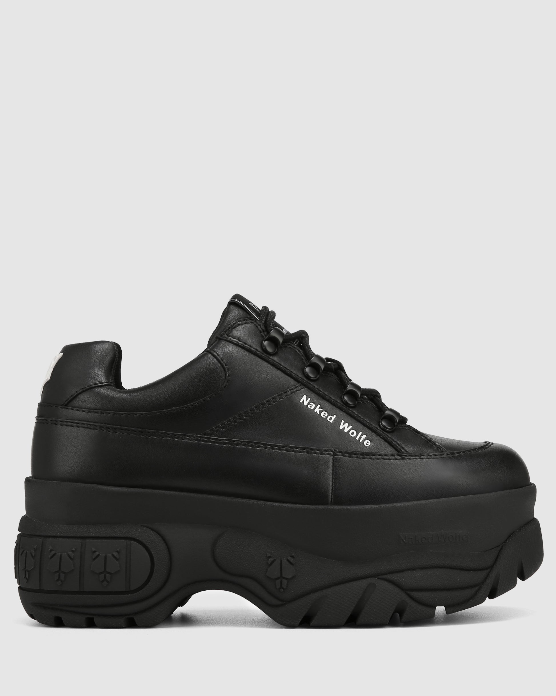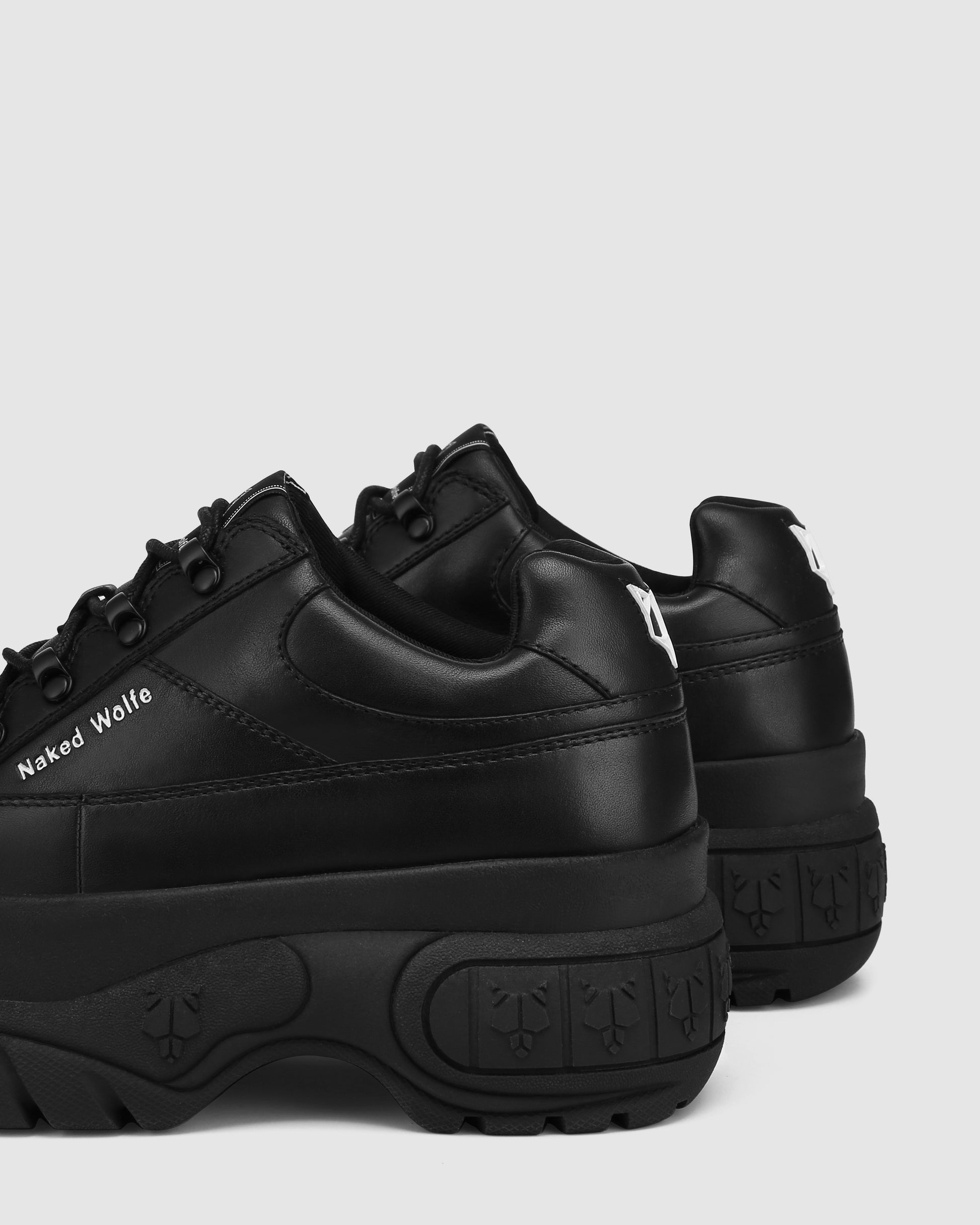 90's inspired platform chunky lace up sneaker featuring the Naked Wolfe Rubber Wolfe head plaque and side branding.