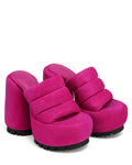 WILD is our brand new inflated heel to join the WOW family... with a toe shape design inspired by the full moon in a new, super round shape. Made from super-soft padded kid suede upper and lining with a padded heel and platform to match, featuring the famous wolfe head plaque on the heel. This upper design as embroided stitch detail to impact the upper design