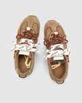 The Adored Khaki Suede sneaker integrates cutting-edge design with high-performance features. Equipped with dual cotton laces and a two tone flat lace, it ensures a secure fit and streamlined wear. Its upper, made from durable suede and leather delivers both enhanced resilience and a distinctive textured aesthetic, making it ideal for everyday use with a technical edge.