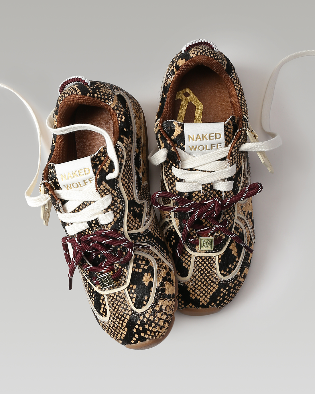 The Adored Snake Pony sneaker integrates cutting-edge design with high-performance features. Equipped with dual ribbon laces and a flat lace, it ensures a secure fit and streamlined wear. Its upper, made from durable premium snake-pattern pony hair, delivers both enhanced resilience and a distinctive textured aesthetic, making it ideal for everyday use with a technical edge.