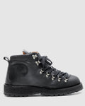 Introducing ARCTIC, a bold evolution in performance footwear for AW25. Built for those who move seamlessly between the wild and the city, this boot fuses a streamlined silhouette with technical precision. Crafted from smooth, heavy-grade black leather it delivers durability, weather resistance, and a refined minimalist edge. Industrial metal hardware and contrasting red expedition laces add a modern, utilitarian finish, while a rugged tread outsole and cushioned interior ensure comfort and stability wherever you go. ARCTIC - refined, resilient, and ready for anything.