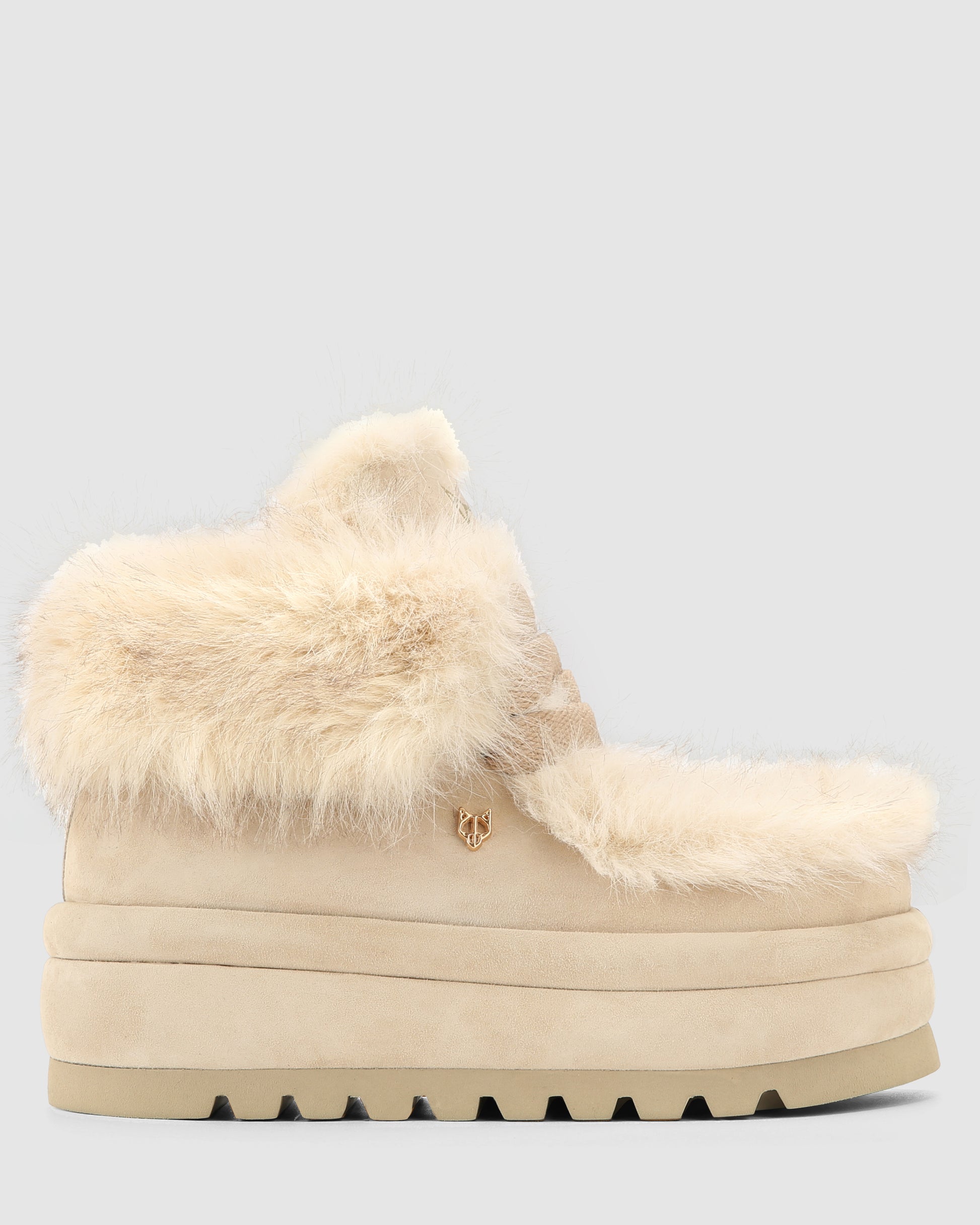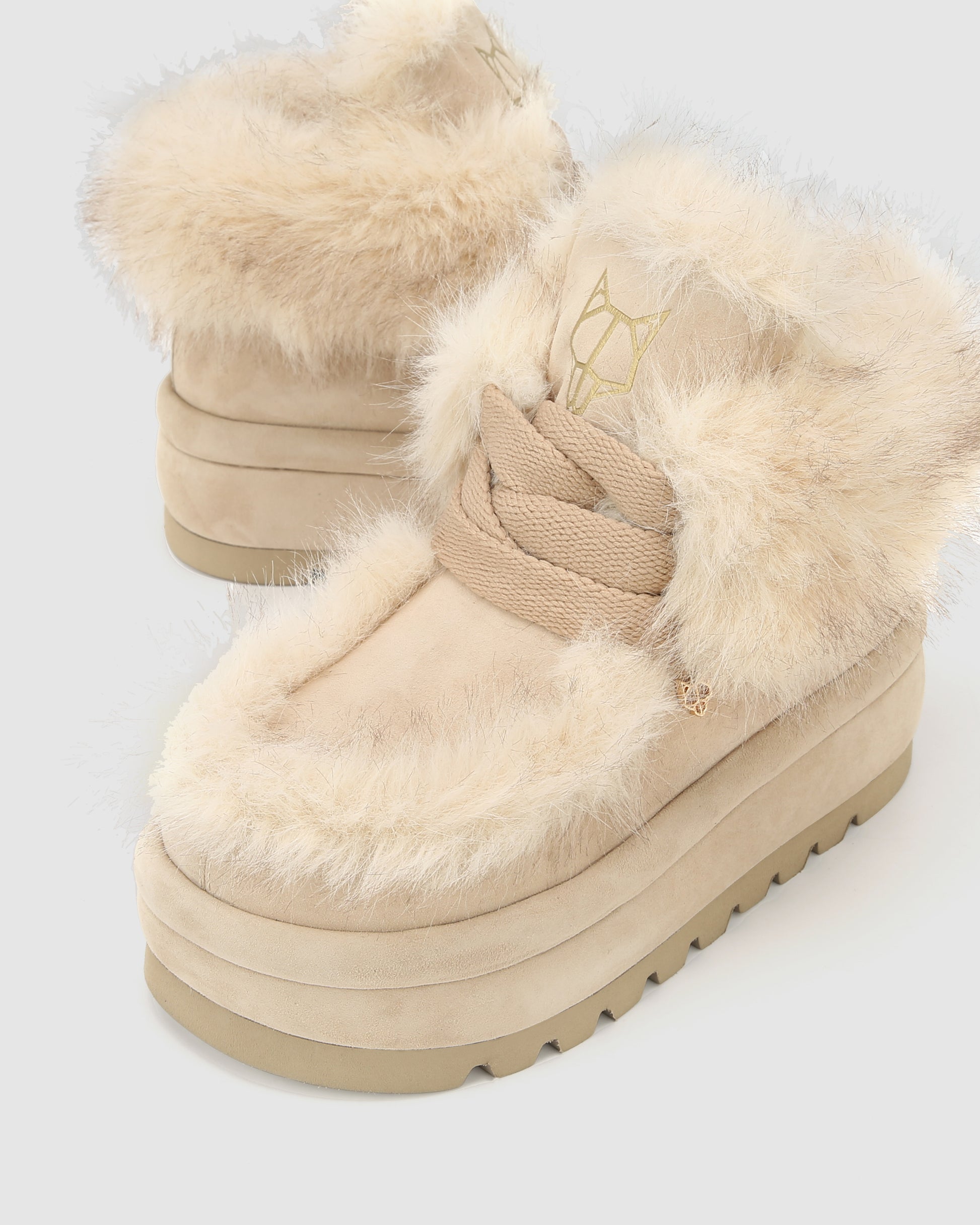 Bambi, the new boot from Naked Wolfe, a perfect blend of luxury and edge. This boot features a premium suede exterior and a warm faux fur lining, ideal for colder weather. With a 60mm heel height and a chunky and super light tread. The design is enhanced by 15mm width laces, an embossed Wolfe head on the tongue, and an embossed logo on the back tape. A small Wolfe head pin at the side adds a distinctive touch, making the Bambi boot a standout piece in any winter wardrobe.
