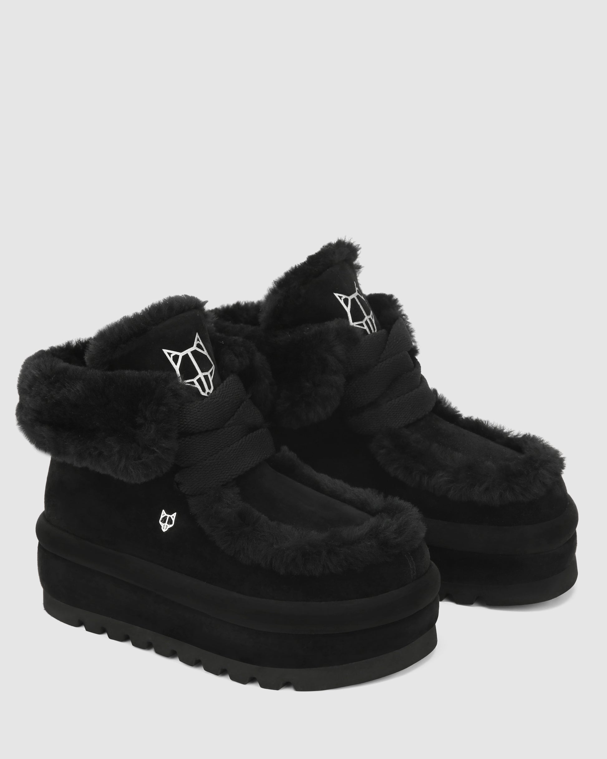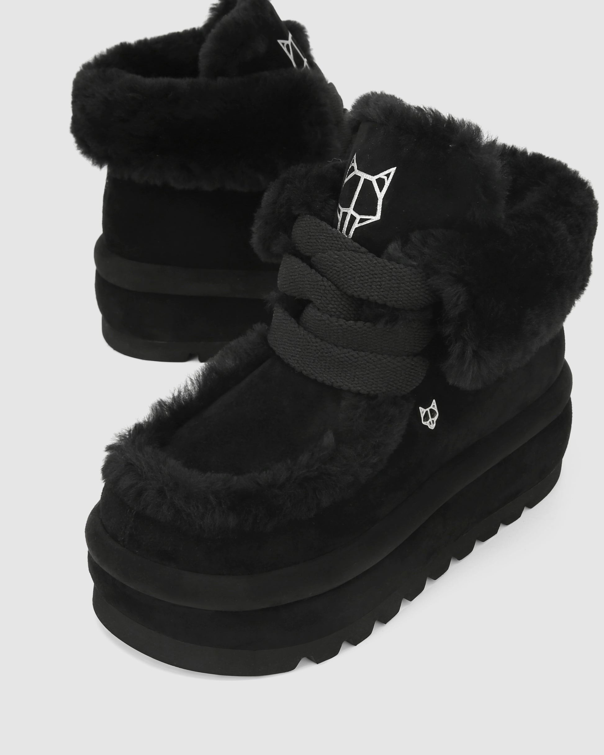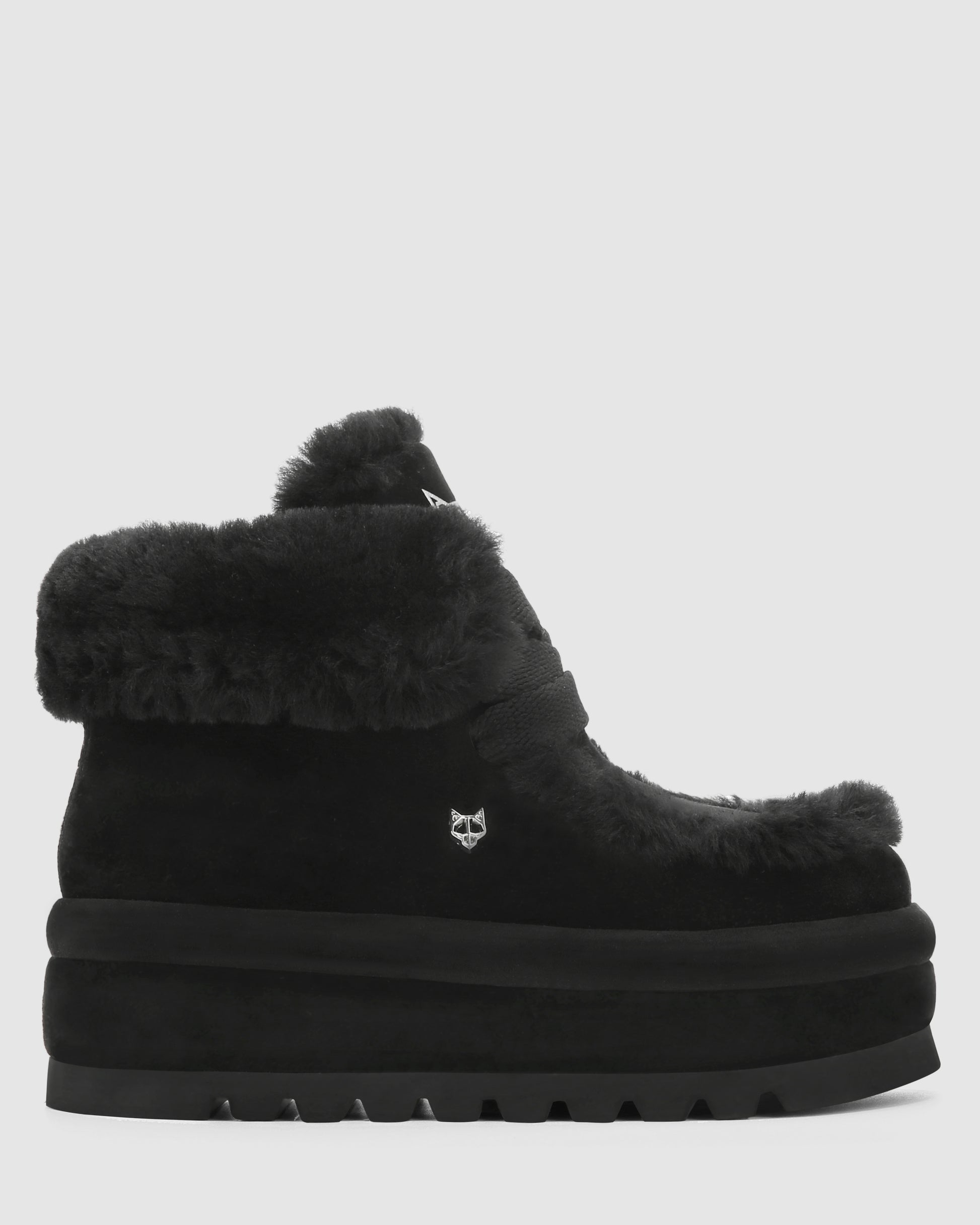Bambi, the new boot from Naked Wolfe, a perfect blend of luxury and edge. This boot features a premium suede exterior and a warm shearling wool lining, ideal for colder weather. With a 60mm heel height and a chunky super light tread. The design is enhanced by 15mm width laces, an embossed Wolfe head on the tongue, and an embossed logo on the back tape. A small Wolfe head pin at the side adds a distinctive touch, making the Bambi boot a standout piece in any winter wardrobe.