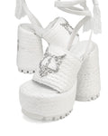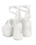 BEACH is our brand new inflated heel to join the WOW family... with a toe shape design inspired by the full moon in a new, super round shape. This style has a super cute woven upper design and summery ankle tie with a padded heel and platform to match, featuring the famous wolfe head plaque on the heel.
