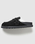 The Cordless Black Hairy Cow Suede mule features a premium hairy cow suede upper complemented by a full leather lining for lasting comfort. It's asymmetric toe design delivers impact, while the plush footbed provides comfort all day. Finished with a custom micro-cell Naked Wolfe outsole, this mule perfectly balances refined style with superior support.