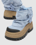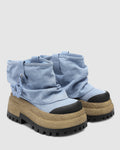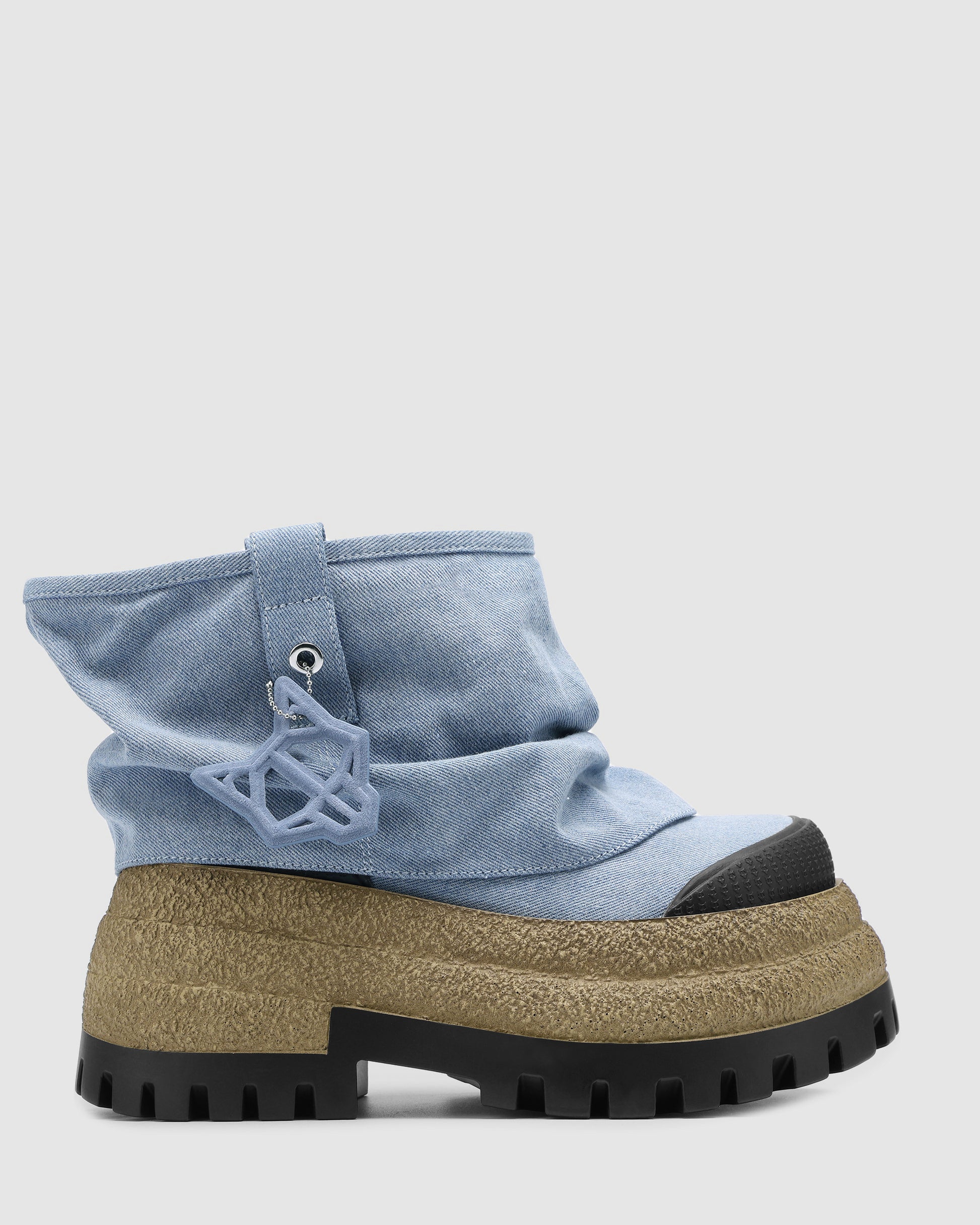 Introducing Dream, the chunky boot of the season with an asymmetric toe shape, designed for those who appreciate bold fashion statements. This boot features a wide leg fit, cute short cut leg, complemented by a distinctive Wolfe head ball charm for added flair. It also includes new rubber toe and heel pieces, combining durability with a modern aesthetic. Each pair has a hand crafted dirty finish. Perfect for trendsetters seeking both edge and elegance, this boot is a must-have for any fashion-forward wardrobe.