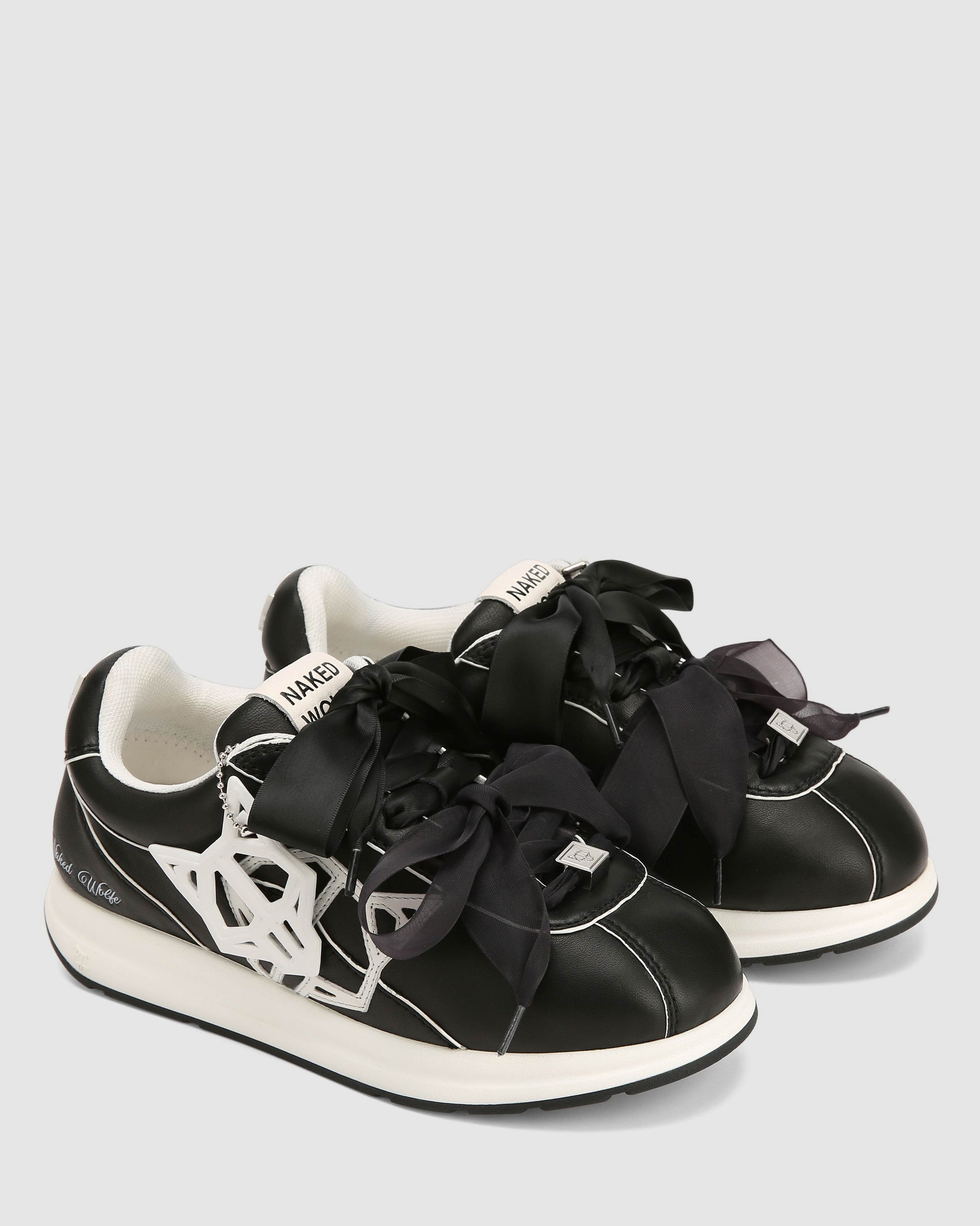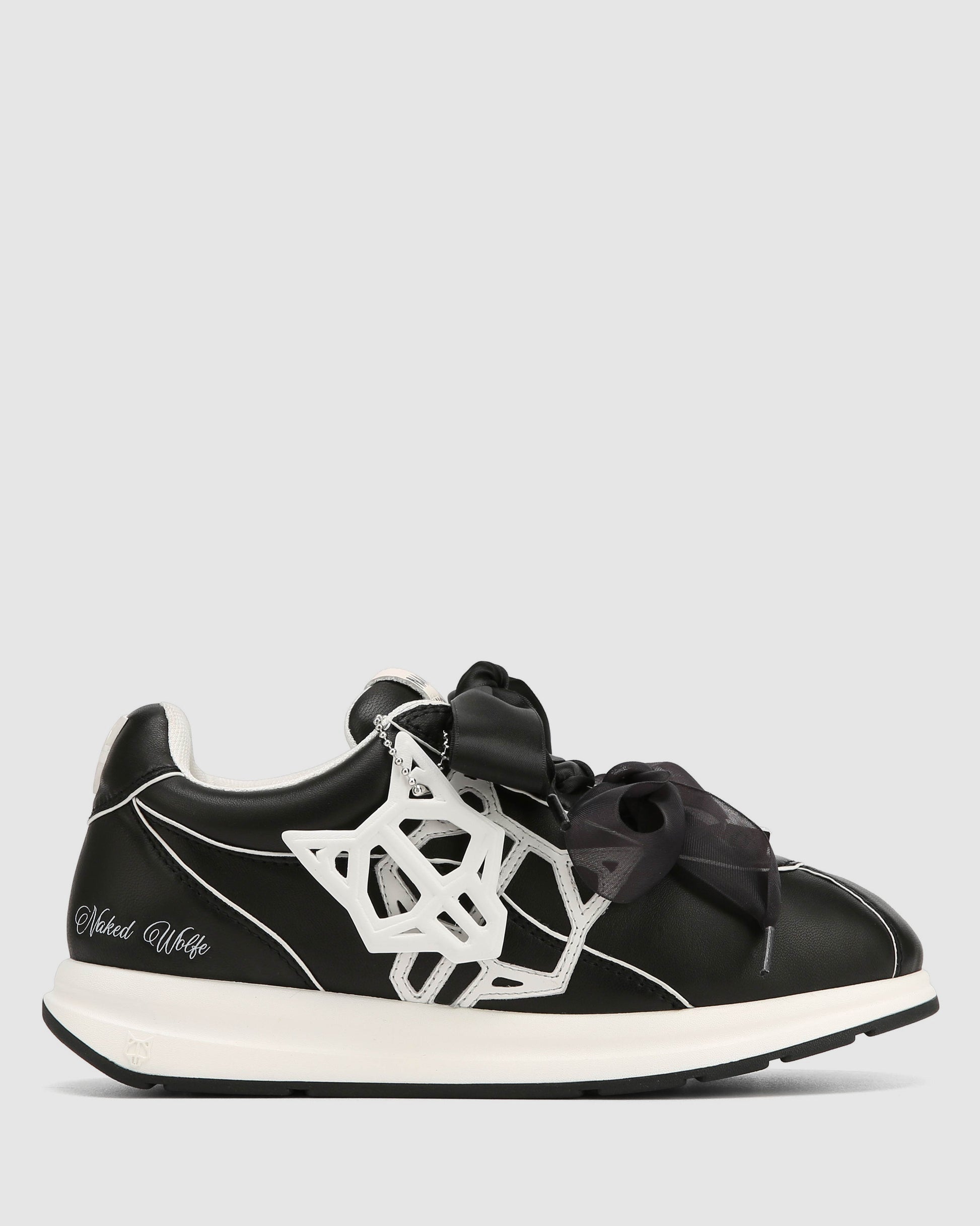 Engineered for impact. The Expense sneaker features a precision-cut cow leather upper paired with a leather logo and detachable Wolfe head patch for modular styling. Double ribbon laces offer a structured fit, while a breathable mesh lining and custom-moulded sock design enhance comfort and airflow. Finished in all over black/white colour way, it sits on a high-performance PU and rubber outsole with integrated Naked Wolfe branding for traction and durability.