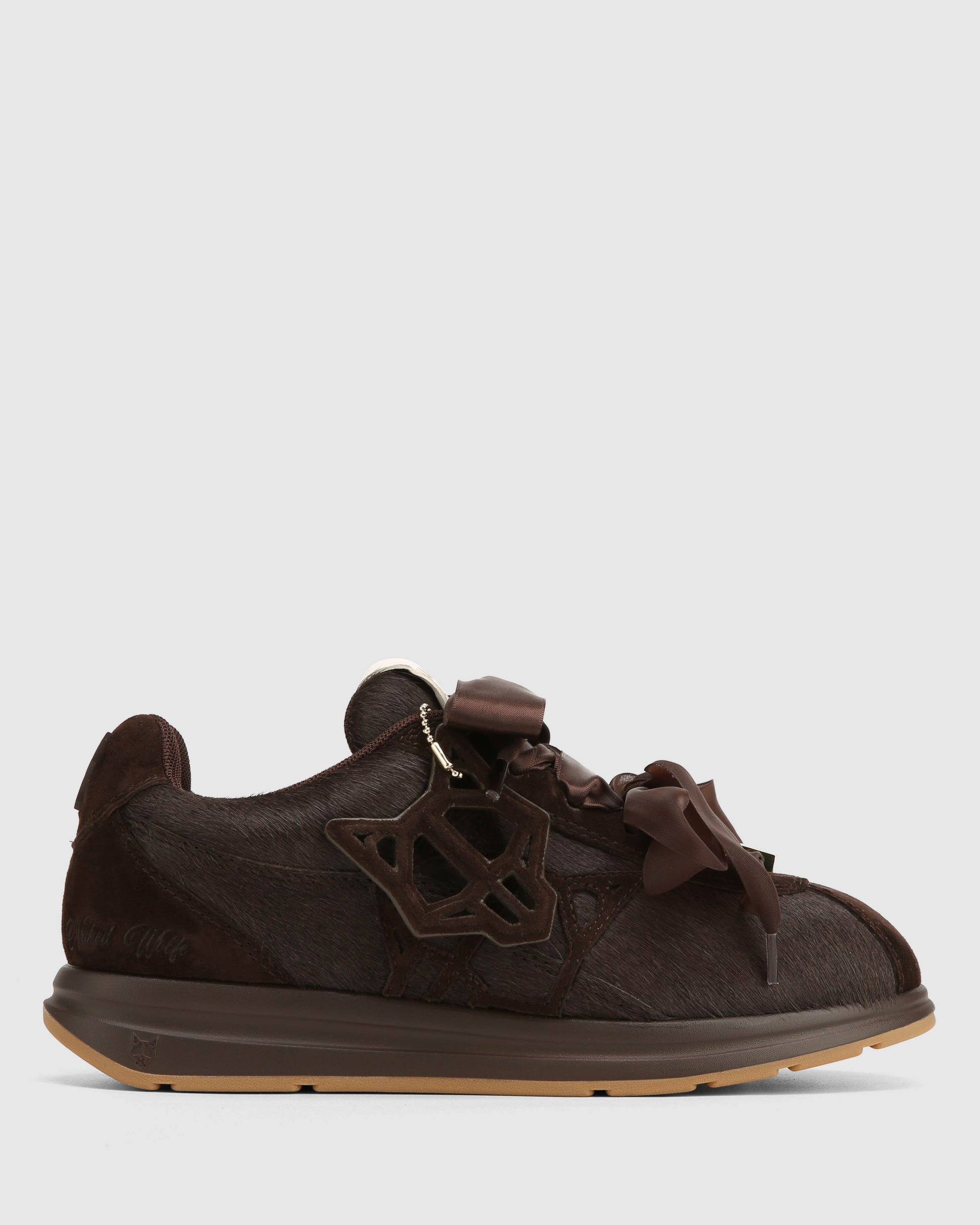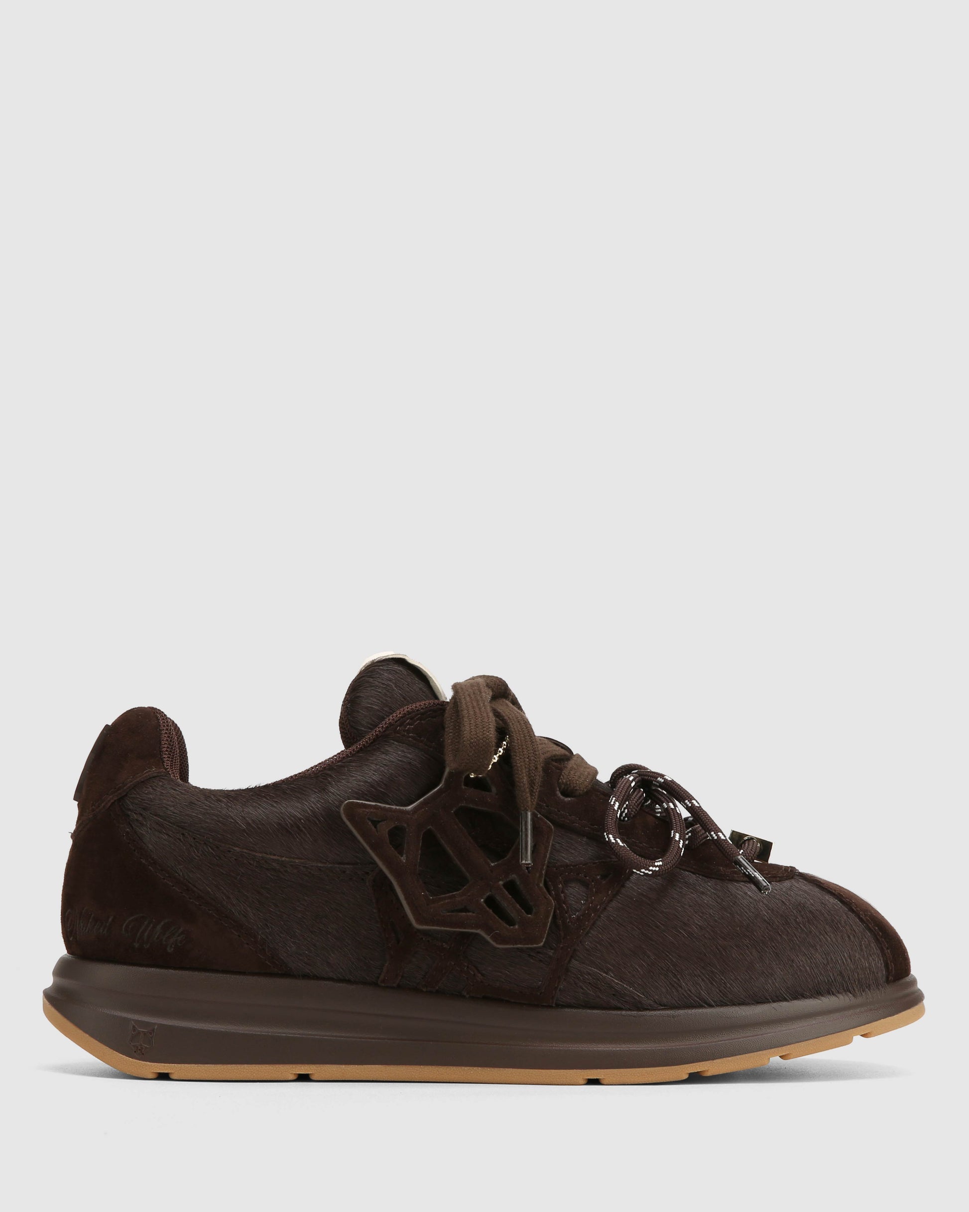 Engineered for impact. The Expense sneaker features a precision-cut pony hair upper paired with a suede logo and detachable Wolfe head patch for modular styling. Double ribbon laces offer a structured fit, while a breathable mesh lining and custom-moulded sock design enhance comfort and airflow. Finished in all over black colour way, it sits on a high-performance PU and rubber outsole with integrated Naked Wolfe branding for traction and durability.