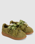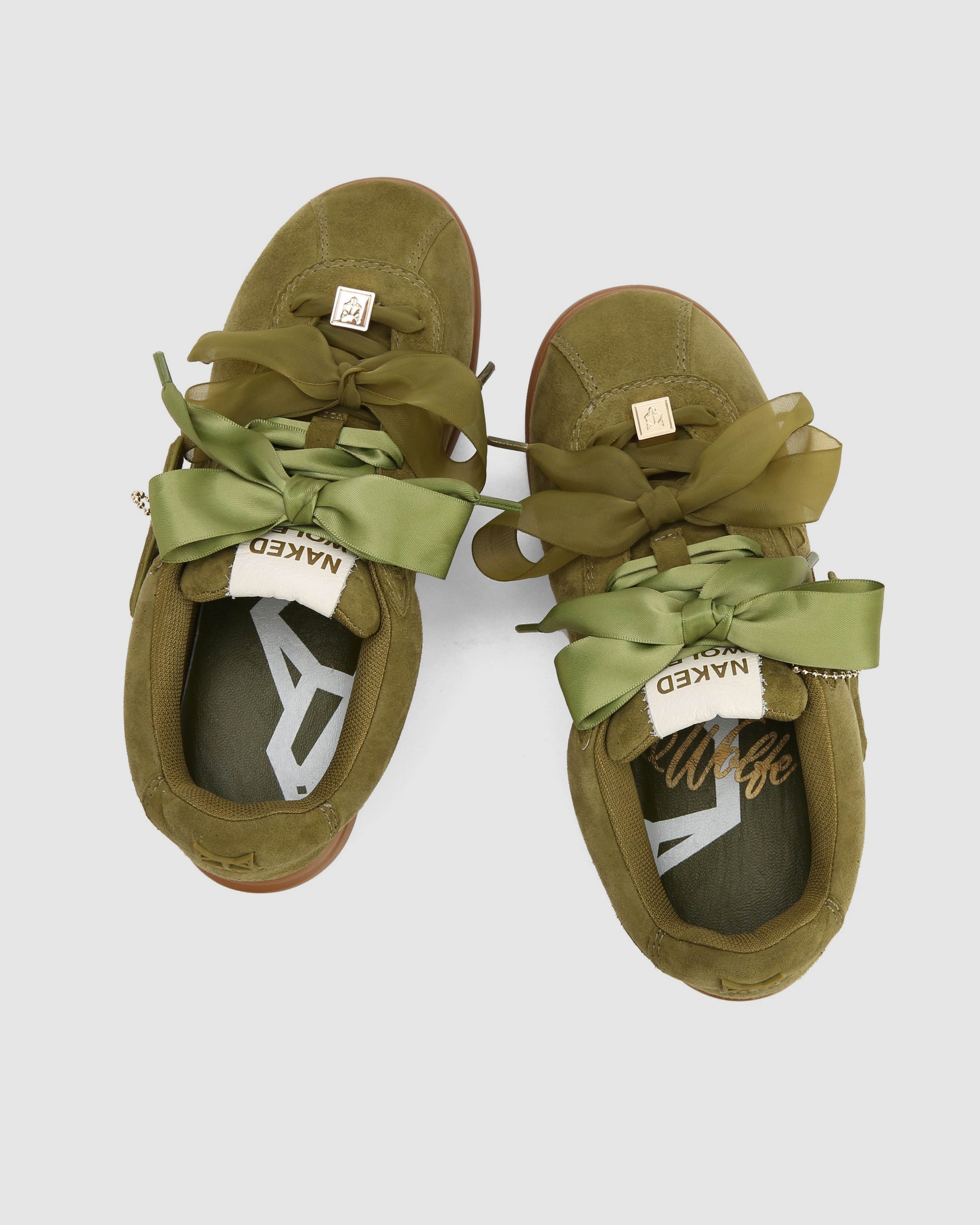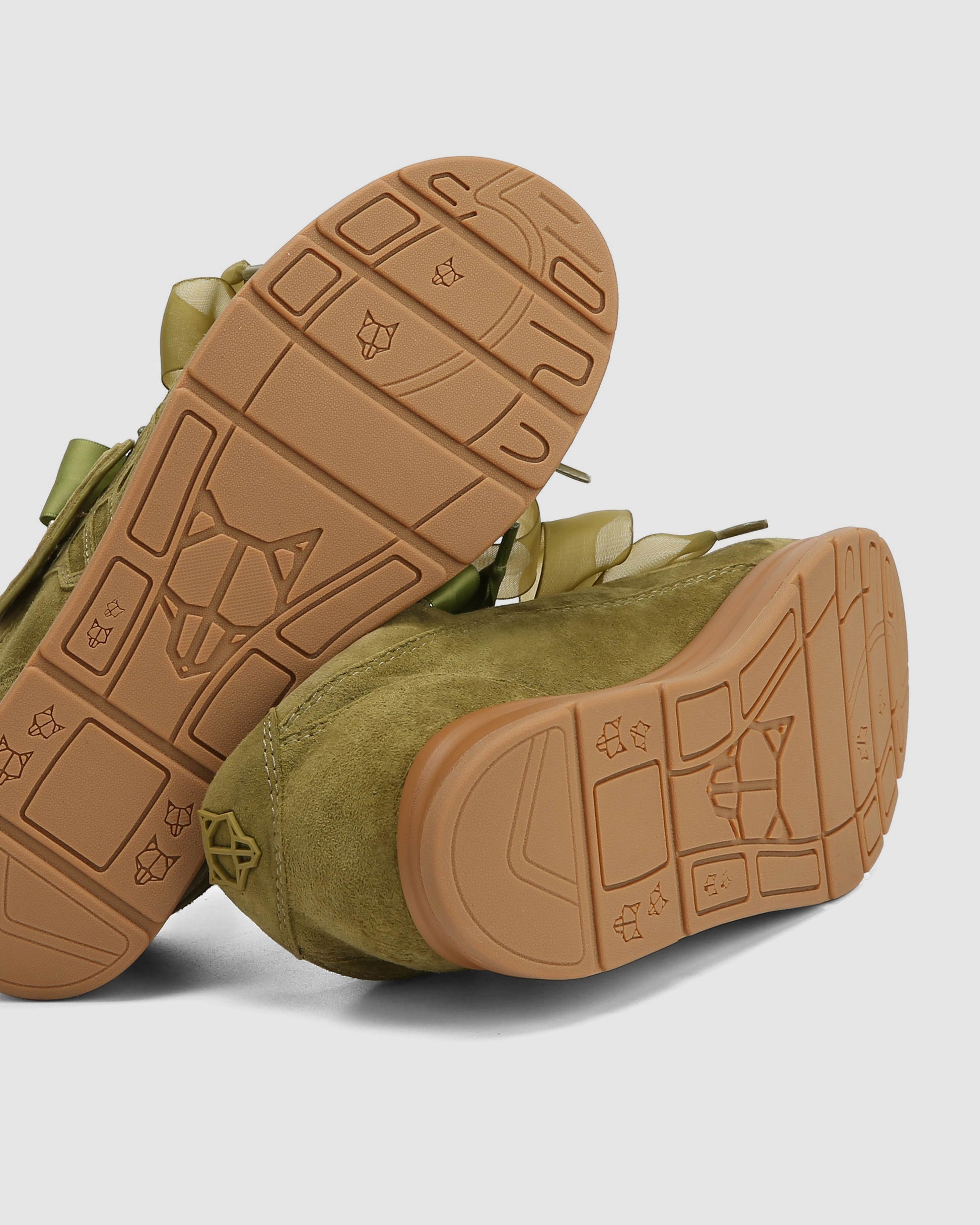 Engineered for impact. The Expense sneaker features a precision-cut suede upper paired with a calf hair logo and detachable Wolfe head patch for modular styling. Double ribbon laces offer a structured fit, while a breathable mesh lining and custom-moulded sock design enhance comfort and airflow. Finished in a khaki colour way, it sits on a high-performance PU and rubber outsole with integrated Naked Wolfe branding for traction and durability.