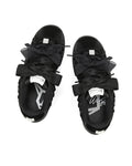 Engineered for impact. The Expensed sneaker features a precision-cut satin scrunch and suede upper paired with a leather logo and detachable Wolfe head patch for modular styling. Double ribbon laces offer a structured fit, while a breathable mesh lining and custom-moulded sock design enhance comfort and airflow. Finished in an all black colour way, it sits on a high-performance PU and rubber outsole with integrated Naked Wolfe branding for traction and durability.
