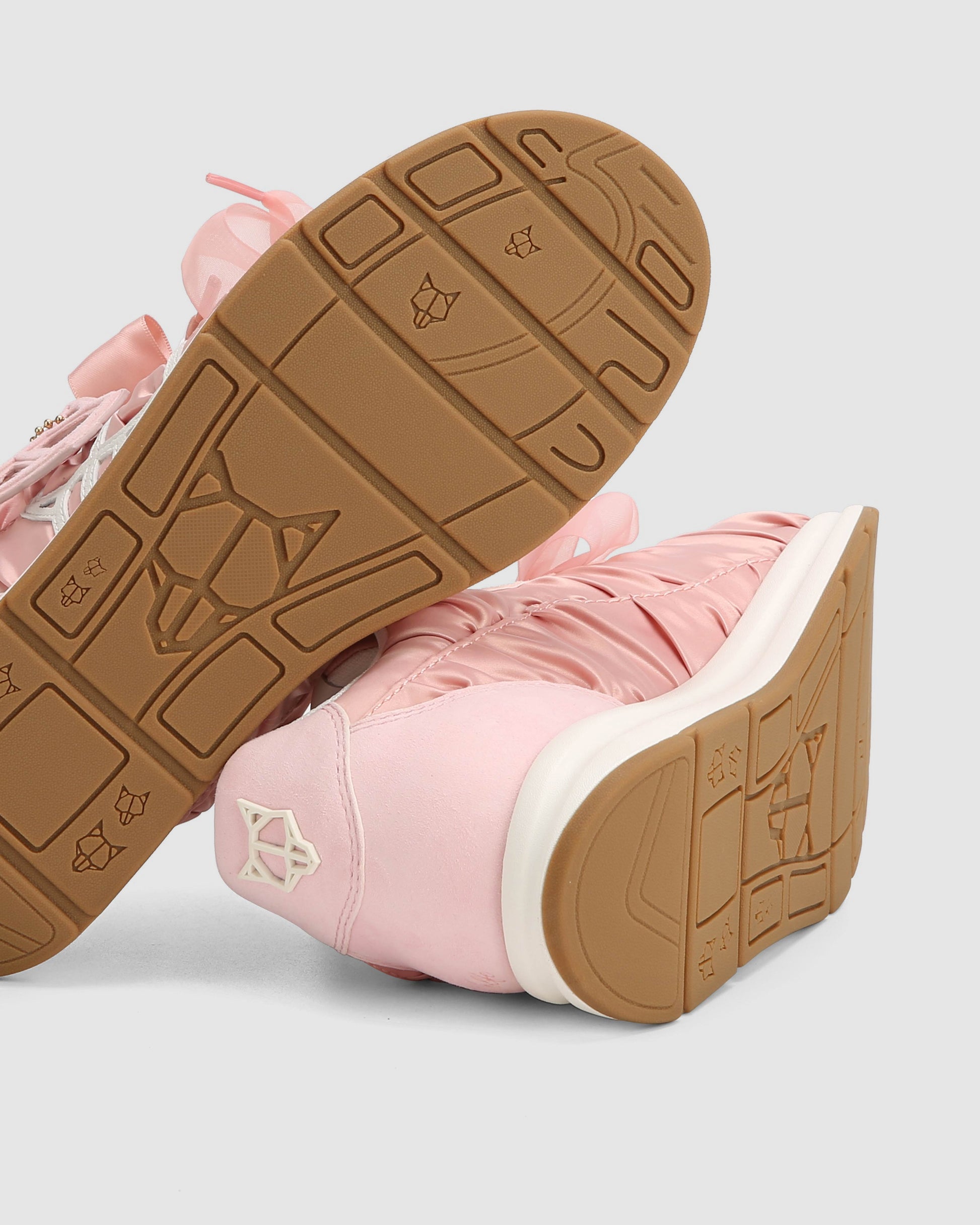 Engineered for impact. The Expensed sneaker features a precision-cut satin scrunch and suede upper paired with a leather logo and detachable Wolfe head patch for modular styling. Double ribbon laces offer a structured fit, while a breathable mesh lining and custom-moulded sock design enhance comfort and airflow. Finished in a tonal pastel pink and white colour way, it sits on a high-performance PU and rubber outsole with integrated Naked Wolfe branding for traction and durability.