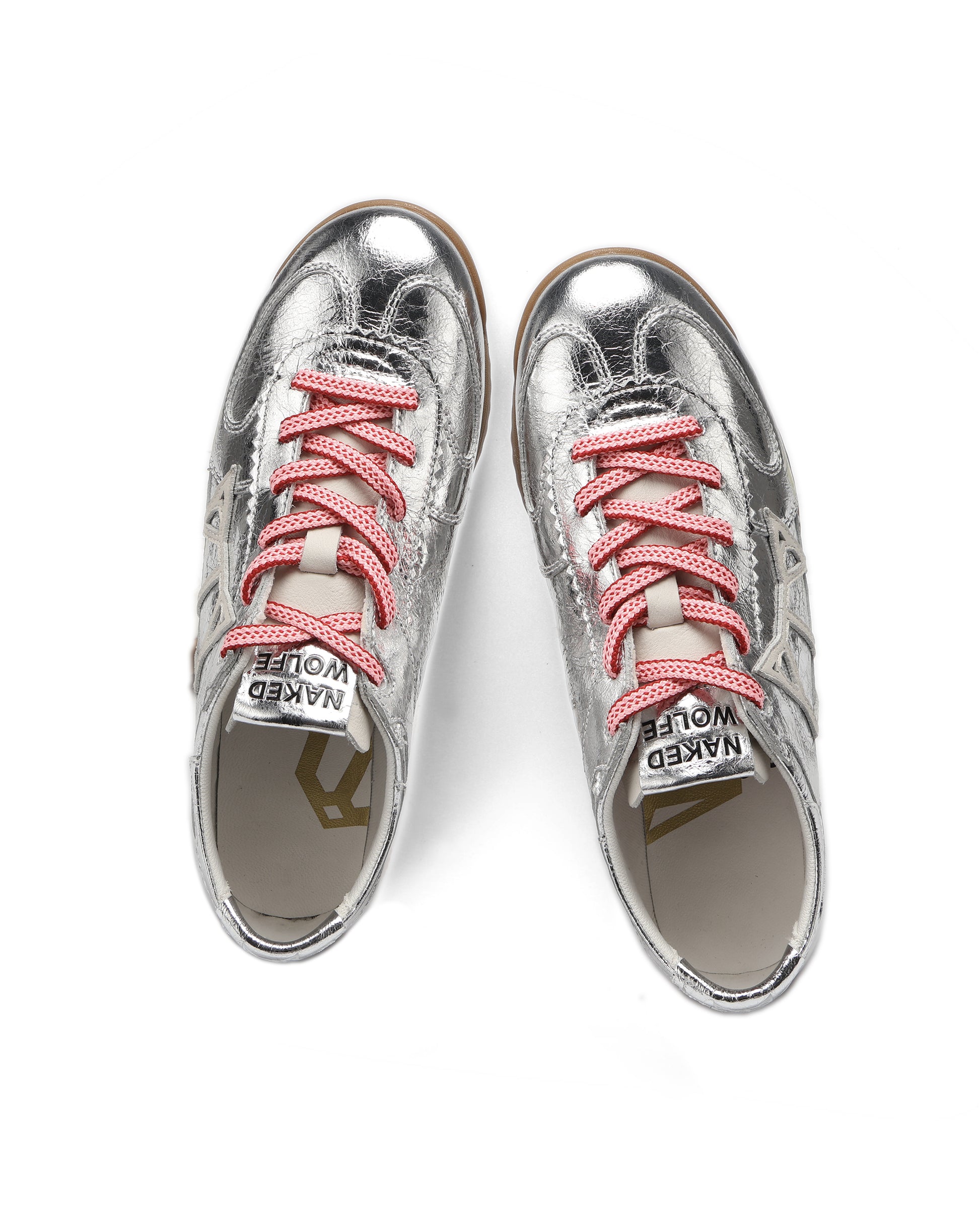 Introducing Exposuree, a fresh take on casual elegance with these crinkle metallic leather sneakers that seamlessly blend neutral colors and luxury materials. Crafted from sumptuous high quality leather and paired with interchangeable laces, these sneakers redefine casual sophistication. The sleek, low-profile silhouette of Exposuree offers a modern and versatile look suitable for a variety of occasions. Designed for both style and comfort, Exposuree comes with a padded foam insole, providing plush cushioning for your every step. The durable rubber outsole custom designed by Naked Wolfe, has been designed piece by piece in the highest quality materials. Elevate your everyday style with the perfect blend of opulence and practicality