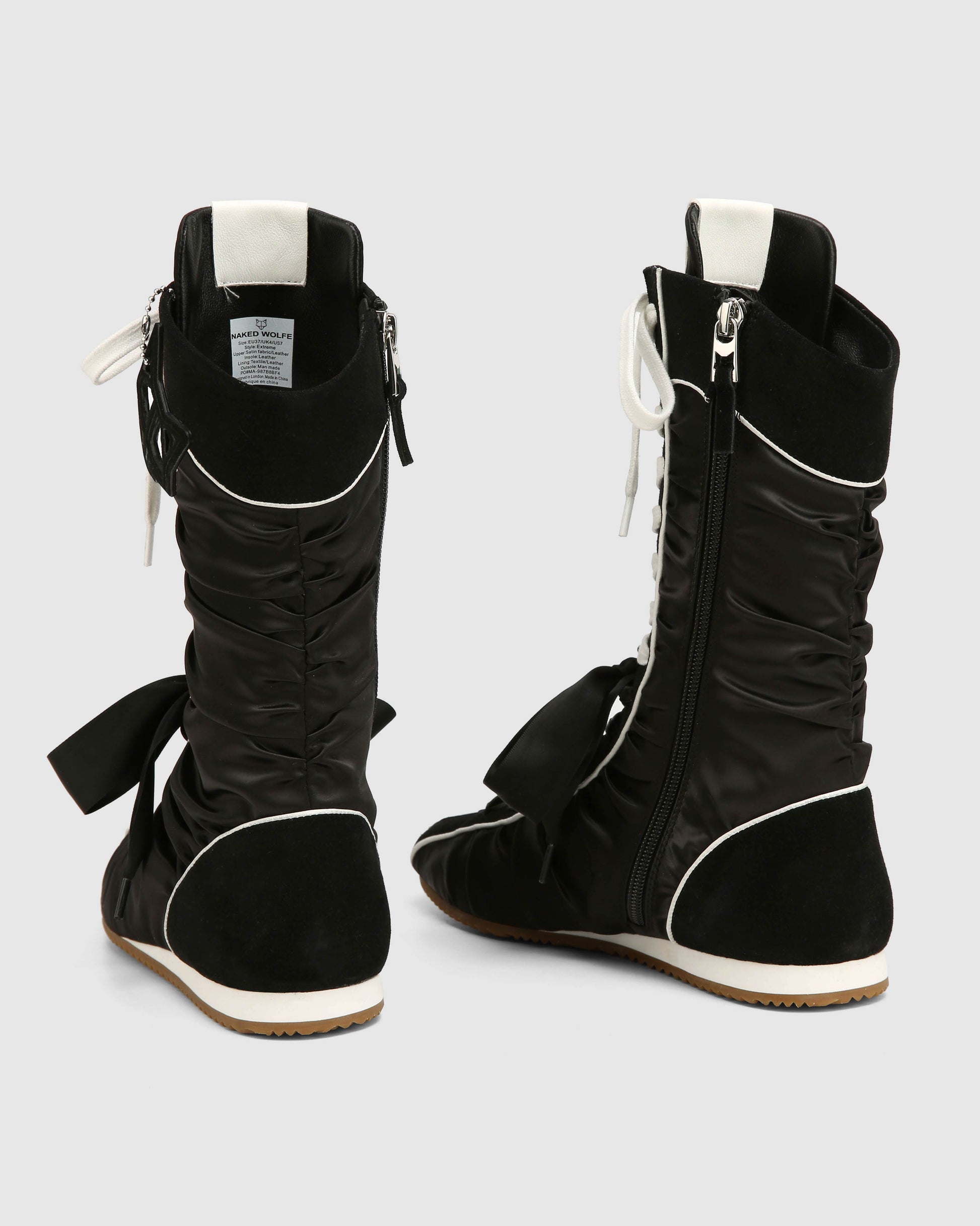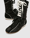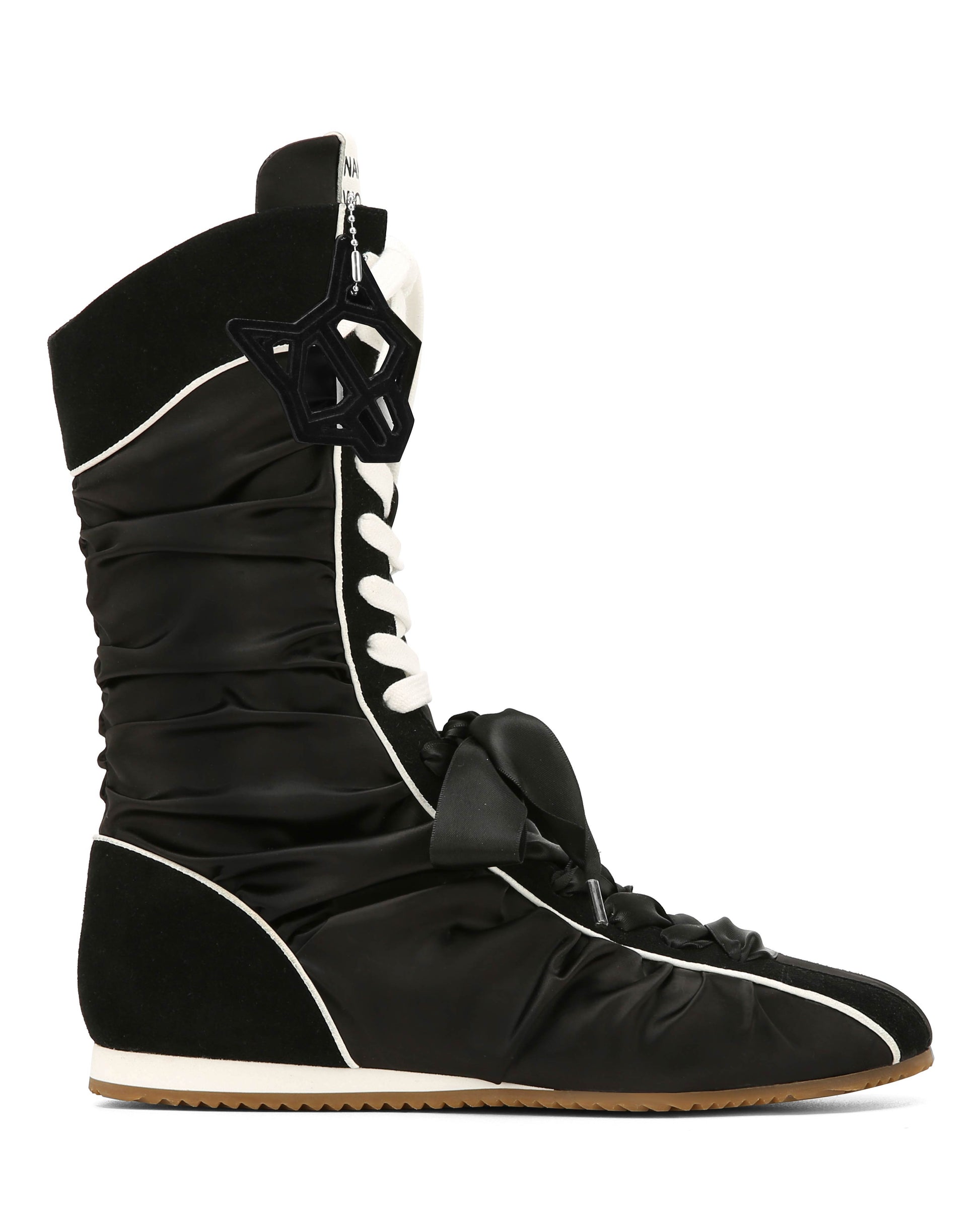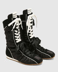 Welcoming Extreme our brand new under the knee boxing boot. Crafted from Leather, Suede and Silk Satin, this premium boot features a rubber outsole, our famous removable featured logo, branded leather tongue patch. The lace-up design ensures a secure fit, while the inside zip allows for effortless slip-on.
