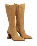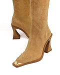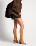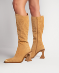 Fame, an under the knee western zipped boot featuring a striking 9cm custom Naked Wolfe heel. The sleek western pattern is partnered with beautiful western stitching. Perfect for day and night, these boots offer both elegance and edge. Fame features our brand new custom designed toe piece, made out of stainless steel.