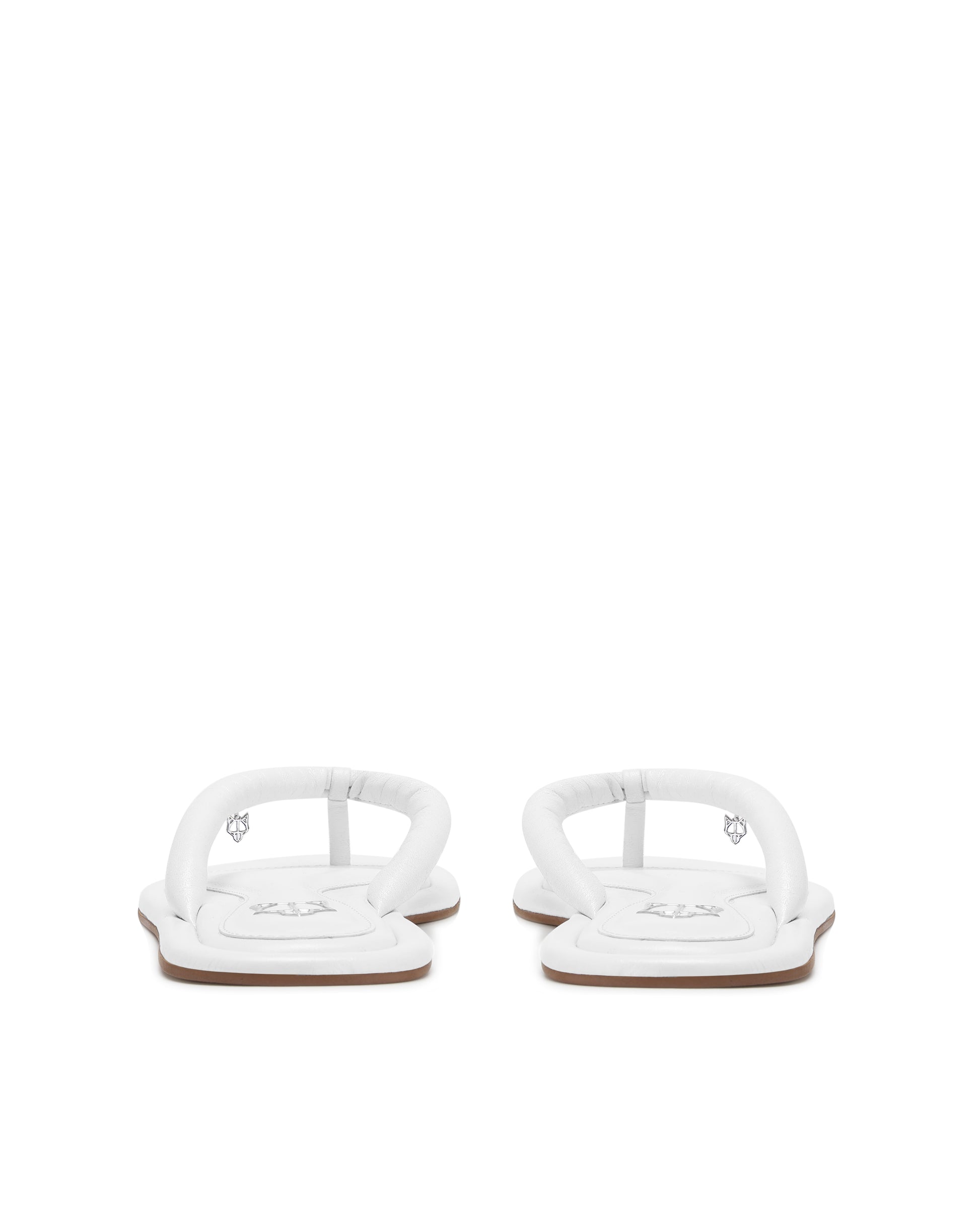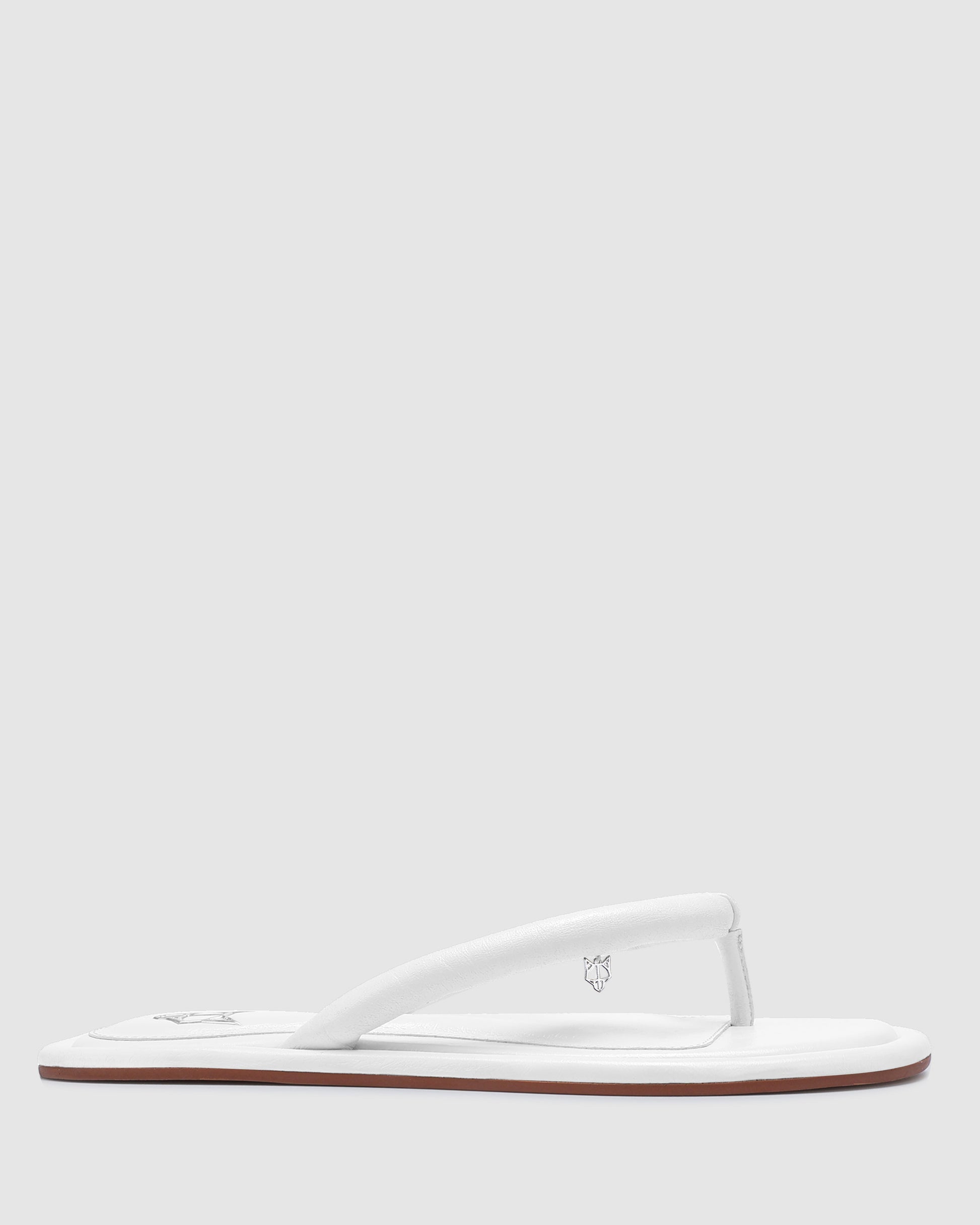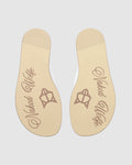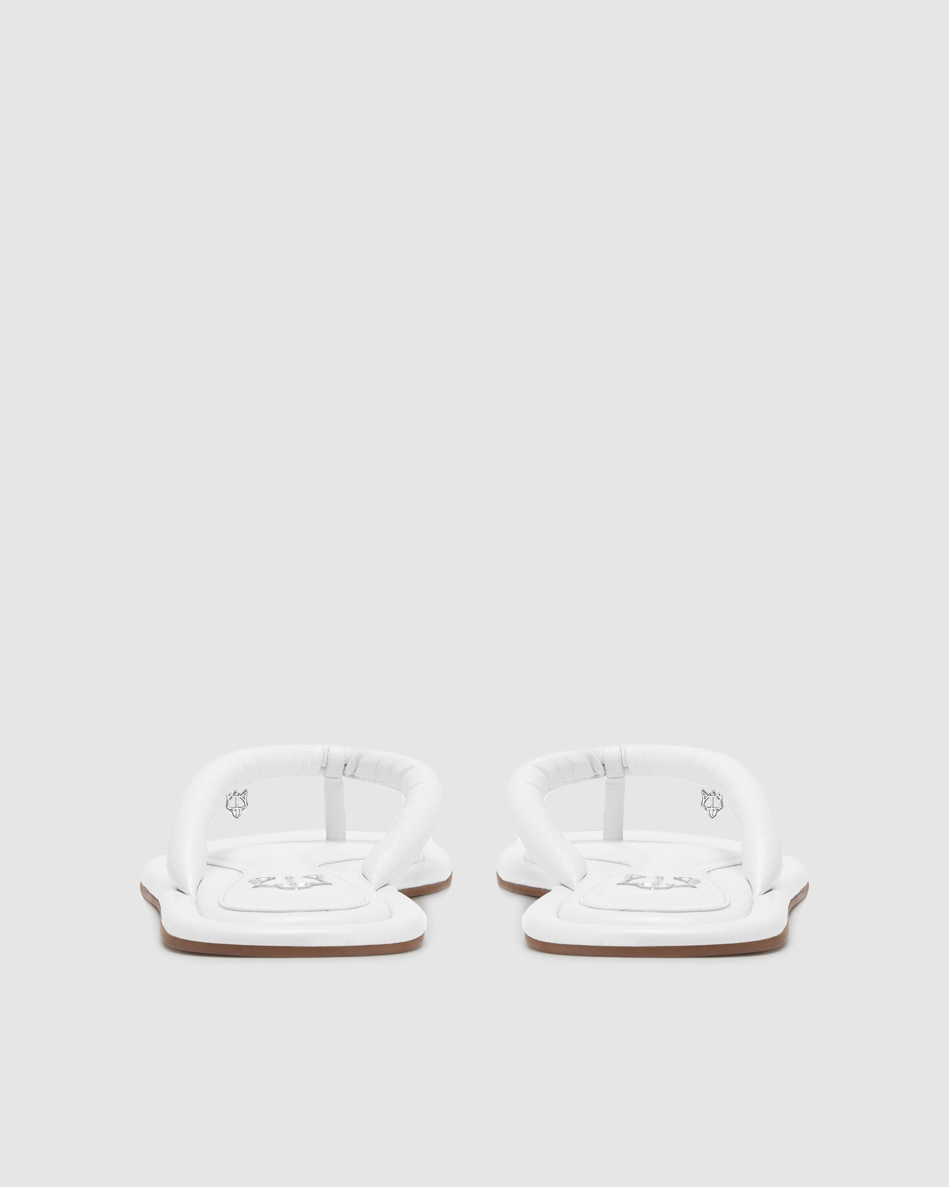 Indulge in pure elegance with our Grenada White Leather sandals. Crafted with a full leather upper and a soft padded insole, these flat sandals offer luxurious comfort. The charm feature detail adds a touch of sophistication, making them the perfect choice for any occasion. Step into luxury with Grenada.