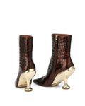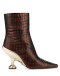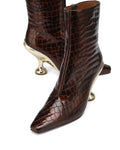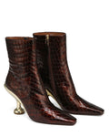 Introducing Kayla. Stand out in style with our Black Leather Ankle Boot, featuring a striking 9cm custom Naked Wolfe heel. The sleek Italian croc leather and unique heel design combine to create a bold, fashion-forward look. Perfect for any occasion, these boots offer both elegance and edge.