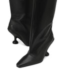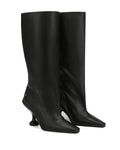 Introducing Kiki, a mid calf boot featuring a striking 9cm custom Naked Wolfe heel. The sleek suede upper and unique heel design combine to create a bold, fashion-forward look. Perfect for any occasion, these boots offer both elegance and edge.