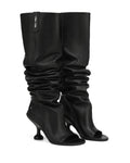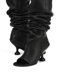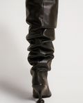 Introducing Kind, our under-the-knee baggy open toe scrunch boot, available in both suede and leather options. Featuring a striking 9cm custom Naked Wolfe heel and a round asymmetrical toe shape, these boots blend contemporary design with luxurious comfort, offering a unique twist on classic footwear. Perfect for making a bold fashion statement, they elevate any outfit with their distinctive silhouette and premium craftsmanship.