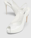 Introducing River a peep-toe heel featuring a slingback silhouette crafted from premium patent leather. The platform and heel are wrapped in matching leather for a cohesive, sleek look.