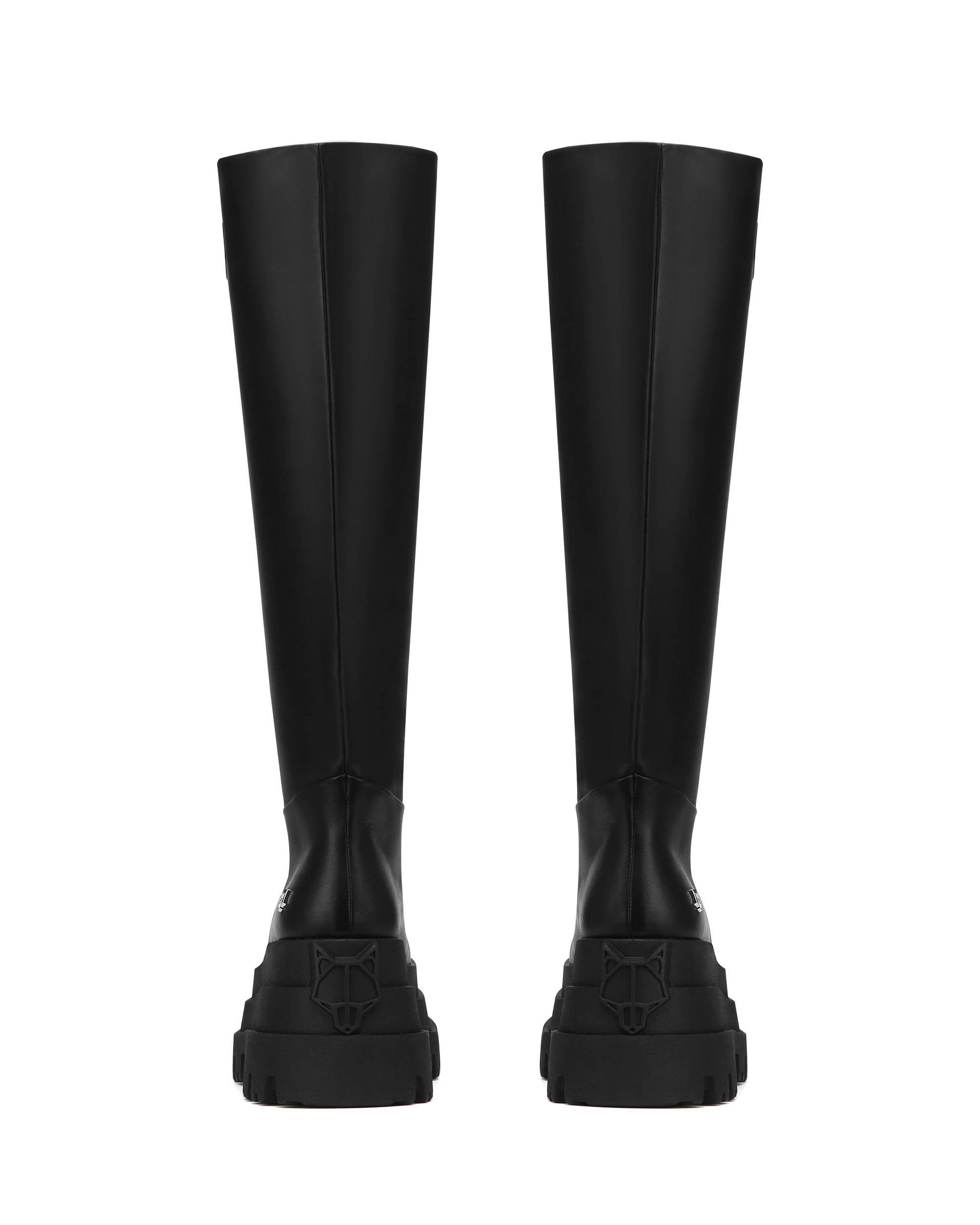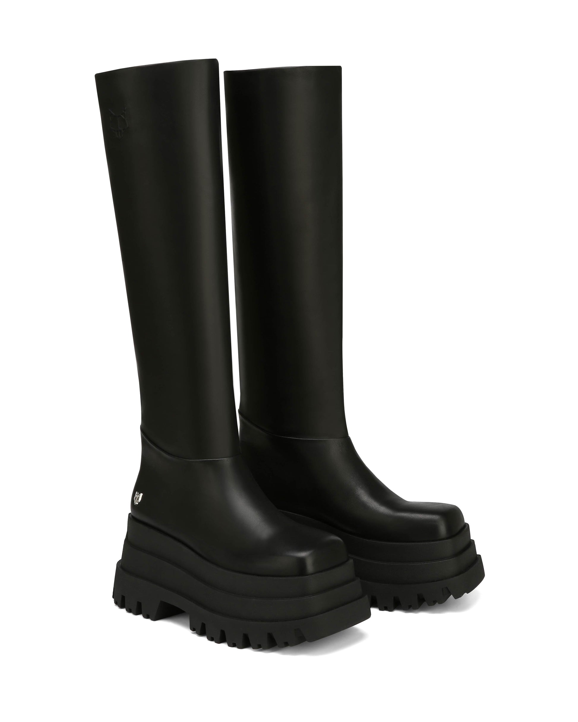 Sasha, our brand new A/W 22 over the knee straight leg leather boot has arrived. Featuring a Custom Naked Wolfe designed 3 tier outsole with a Wolfe Head logo embedded in the heel and Square toe detail.