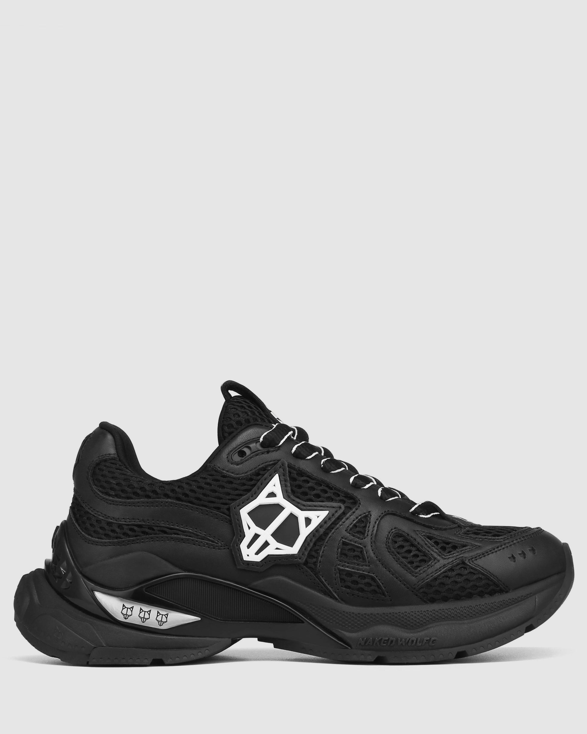 Smash is a mesh, leather and PU sneaker. Featuring a new rubber Wolfe head side patch logo and a our iconic heel 3d rubber wolfe head piece. Smash features our custom sports PU material which presents 3 lazer cut wolfe heads on the mud guard. Smash is presented on a brand new custom designed Naked Wolfe sole. This sole is made up of 5 differnt pieces, made from only the highest quality materials. Featuring a brand new wolfe head tpu insert and a brand new iconic outsole design.
