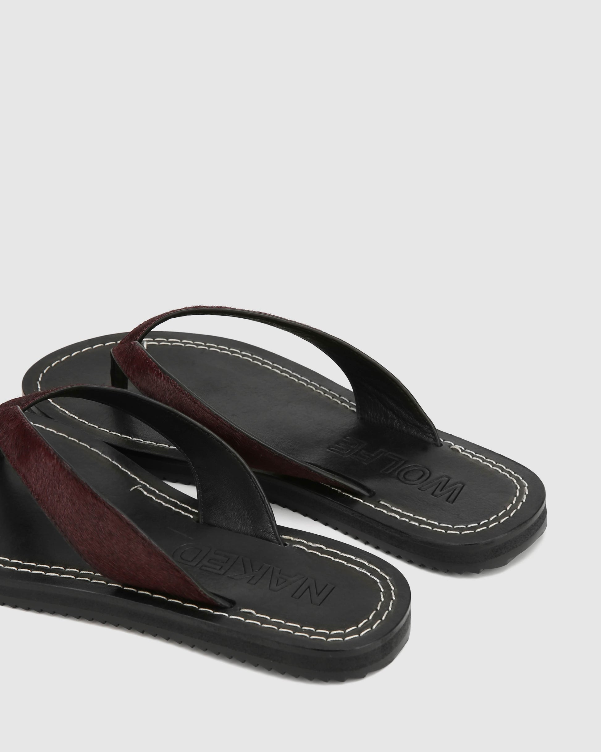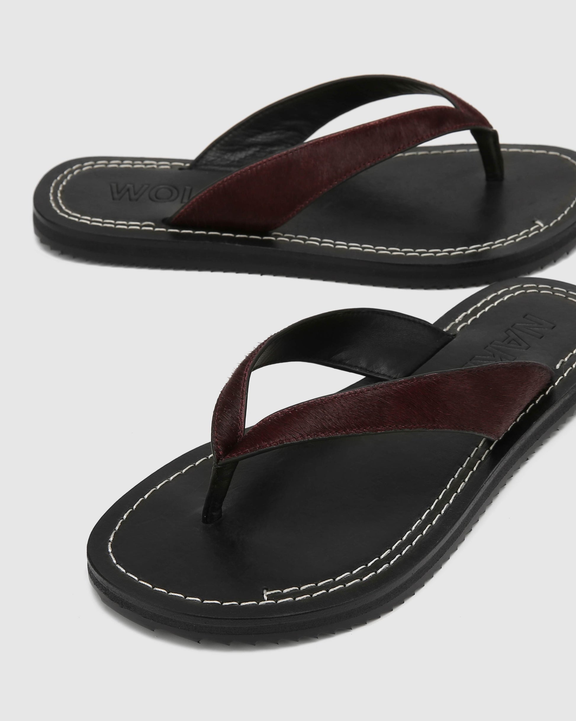 Indulge in pure elegance with our St Barths burgundy pony sandals. Crafted with a pony hair upper and a soft leather insole with stitching details, these sandals offer luxurious comfort.