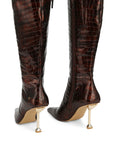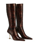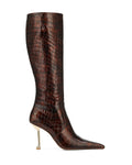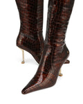 Introducing the Venture boot from Naked Wolfe, a striking pointed-toe heeled boot. Standing tall with a 9cm custom-made heel featuring a unique Wolfe head design at the back, this boot is a true statement piece. This boot features a leg hugging zipped upper, elasticated gore, this design adds a touch of contemporary flair, while the small Wolfe head pin on the side heel counter provides a signature detail. Crafted from luxurious leathers, the Venture boot seamlessly blends high fashion with exquisite craftsmanship, making it a standout addition to any stylish wardrobe.