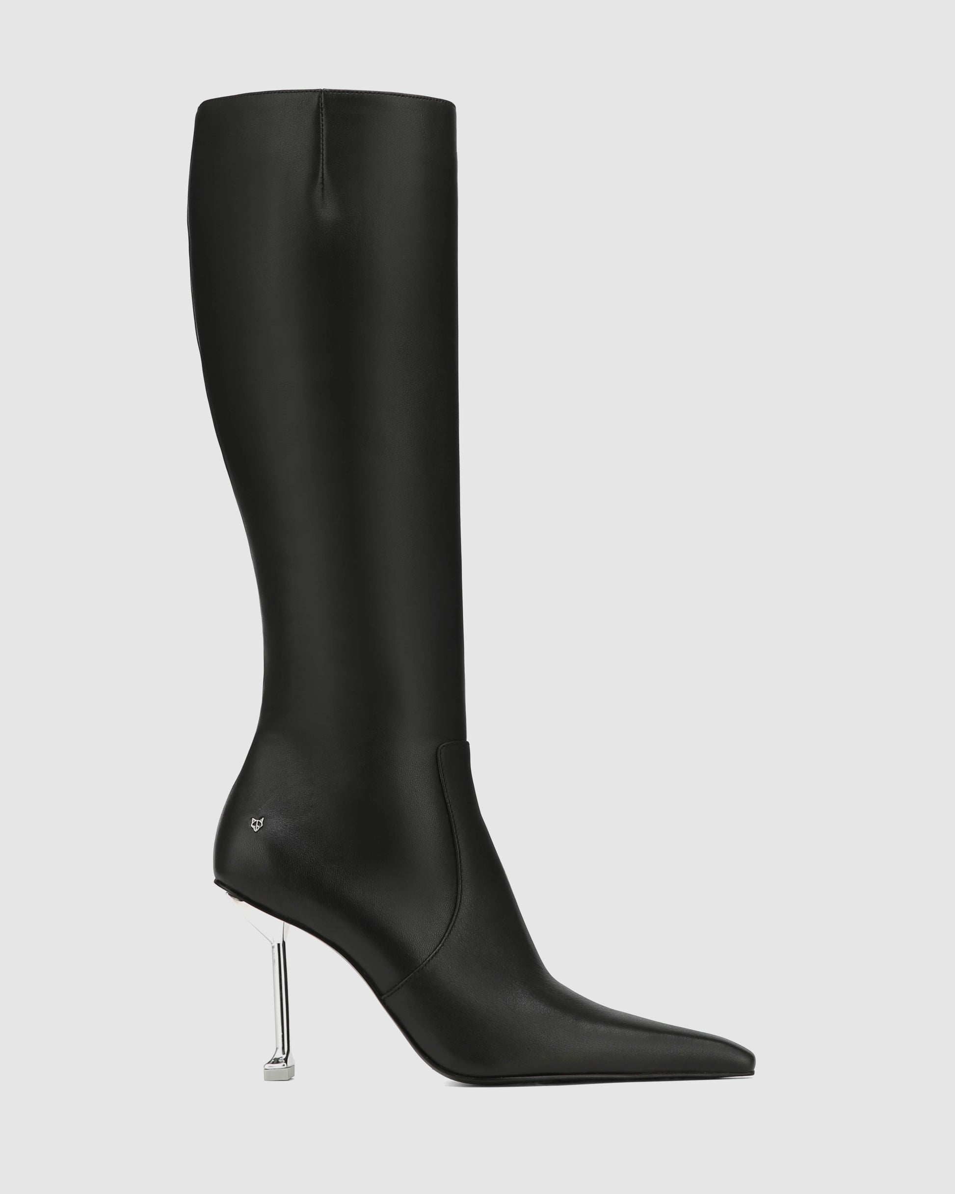 Introducing the Venture boot from Naked Wolfe, a striking pointed-toe heeled boot. Standing tall with a 9cm custom-made heel featuring a unique Wolfe head design at the back, this boot is a true statement piece. This boot features a leg hugging zipped upper, elasticated gore, this design adds a touch of contemporary flair, while the small Wolfe head pin on the side heel counter provides a signature detail. Crafted from luxurious leathers, the Venture boot seamlessly blends high fashion with exquisite craftsmanship, making it a standout addition to any stylish wardrobe.